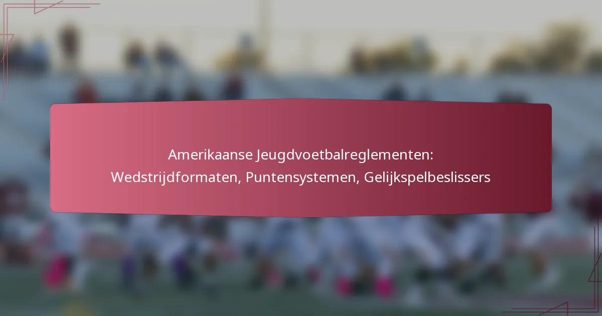 Amerikaans jeugdvoetbal omvat verschillende spelvormen, voornamelijk 7-tegen-7 en 11-tegen-11, afgestemd op verschillende leeftijdsgroepen en vaardigheidsniveaus. Scoren gebeurt door touchdowns, field goals en safeties, met variaties afhankelijk van de competitie. Daarnaast zijn procedures voor het doorbreken van gelijke standen cruciaal voor het bepalen van winnaars in het geval van gelijke scores, vaak met overtime of sudden death-scenario’s.