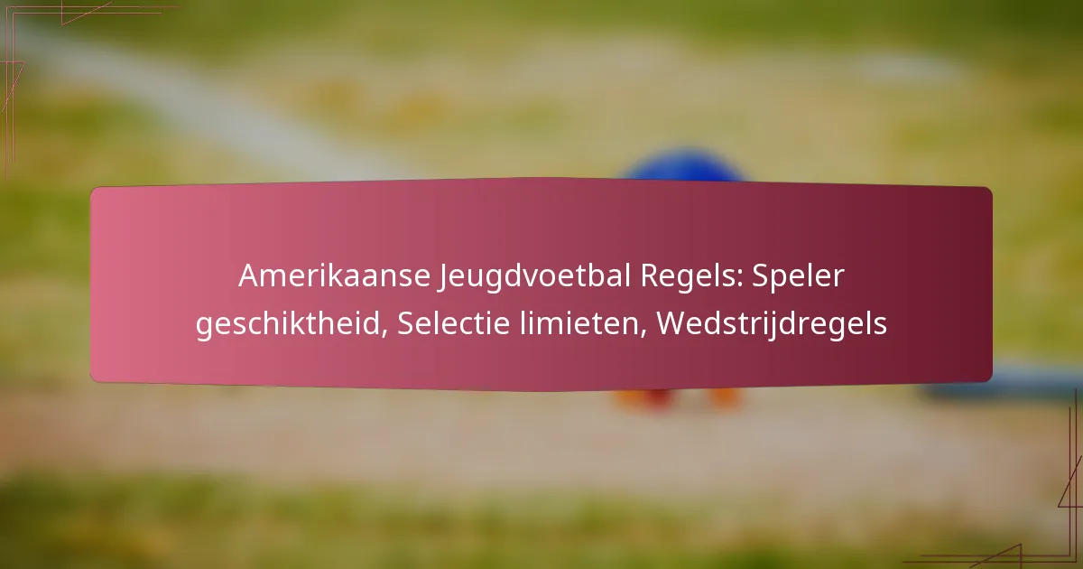 De regels voor jeugdvoetbal in de Verenigde Staten omvatten belangrijke aspecten zoals spelersgeschiktheid, selectiegrenzen en spelregels. Deze richtlijnen zorgen ervoor dat spelers voldoen aan leeftijds- en gewichtseisen, zich houden aan woonplaatsregels en over de nodige medische goedkeuringen beschikken. Daarnaast helpt het begrijpen van selectiegrenzen teams om te voldoen aan de regels en de prestaties te optimaliseren. Bekendheid met deze regels is essentieel voor coaches, spelers en ouders om een eerlijke en plezierige voetbalervaring te bevorderen.